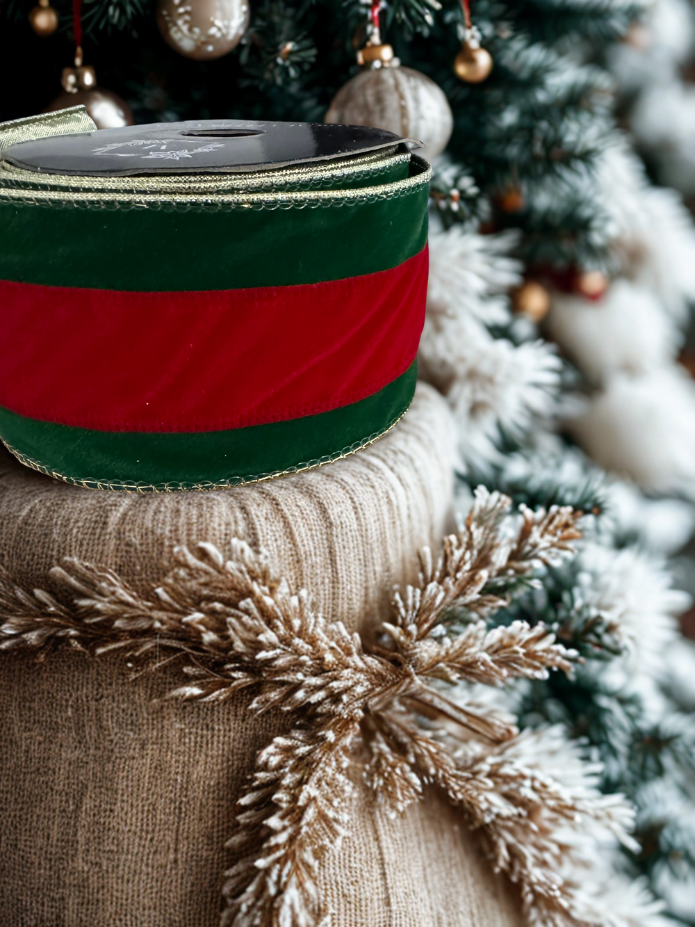 Elevate your holiday décor with this luxurious, triple-tone ribbon that radiates festive elegance!